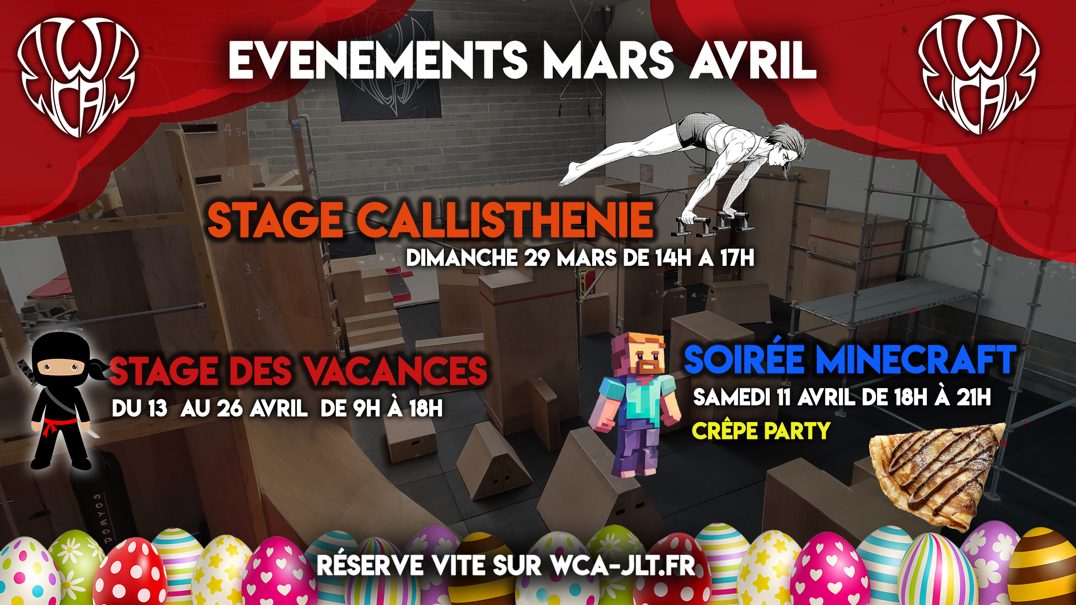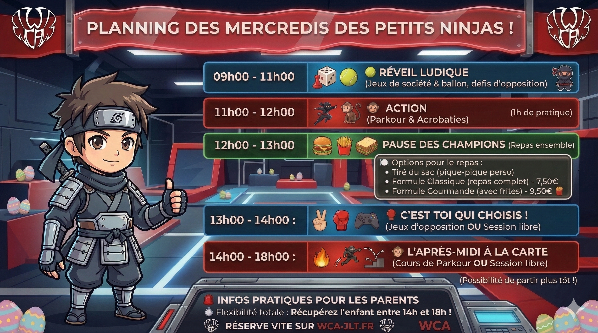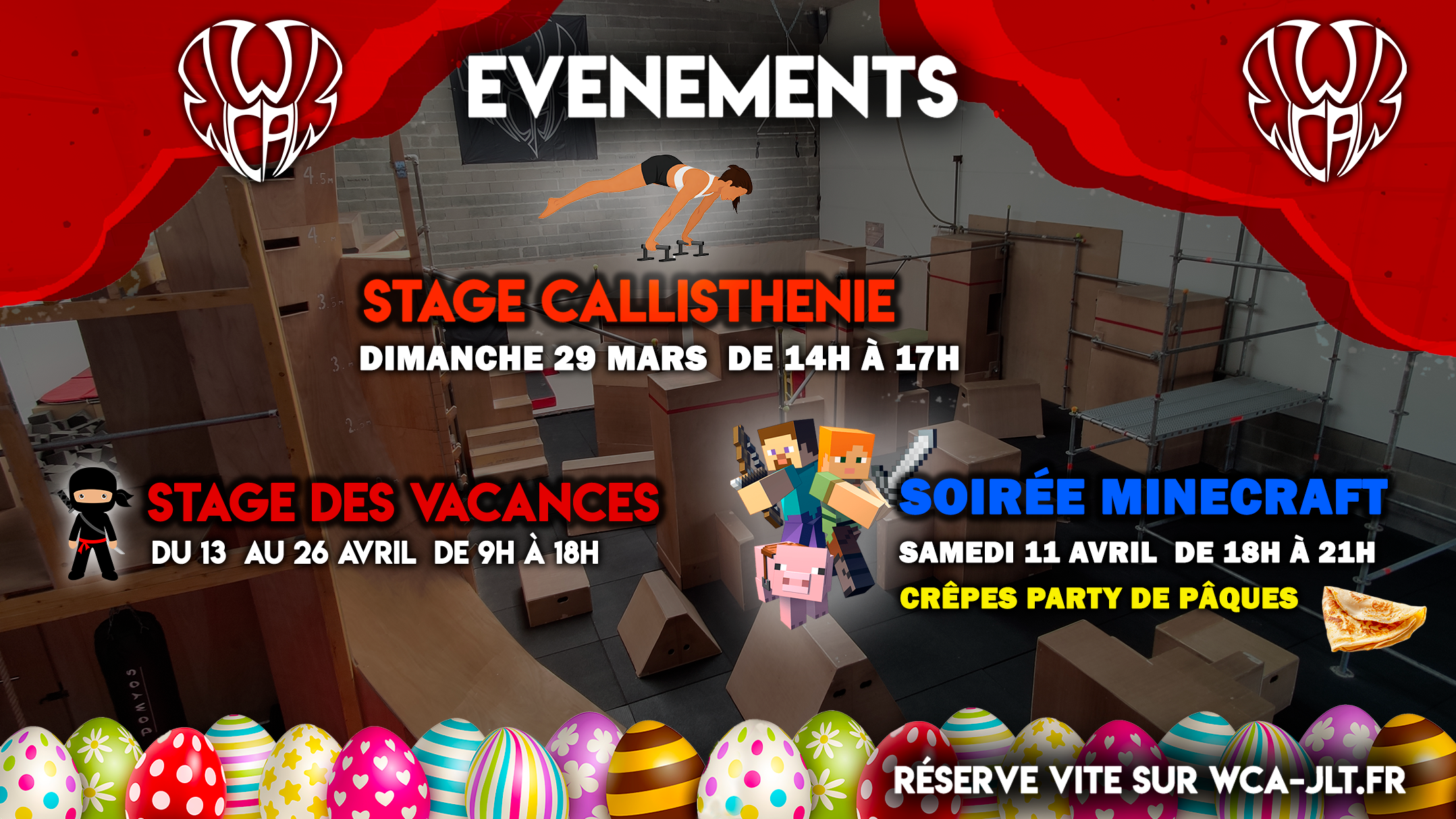 Notre salle vous accueille tous les jours pour vous faire découvrir les disciplines du parkour, de l’acrobatie (grâce à notre trampoline), du Ninja Warrior mais aussi de la pole dance et du cirque aérien.